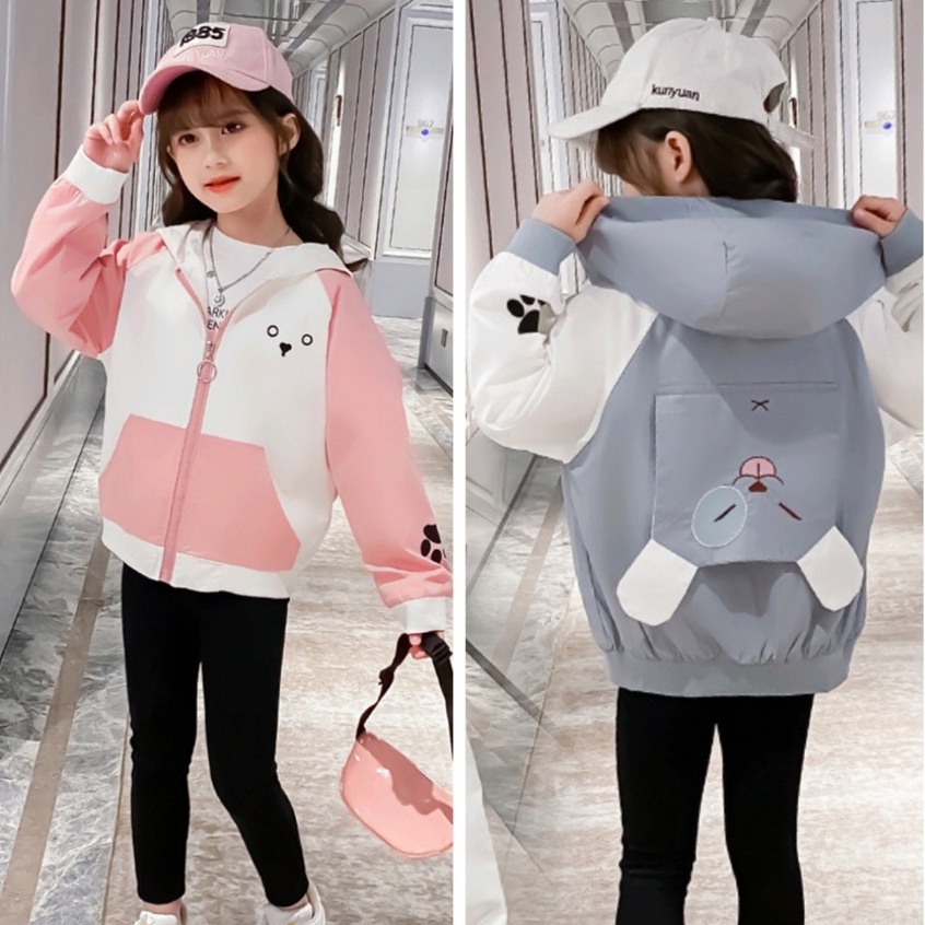 [Cocobaby Jakarta] COD Jaket Anak Perempuan Korean Fashion Cartoon Printed Casual Zipper Outerwear
